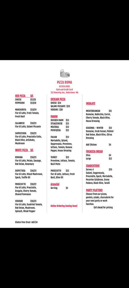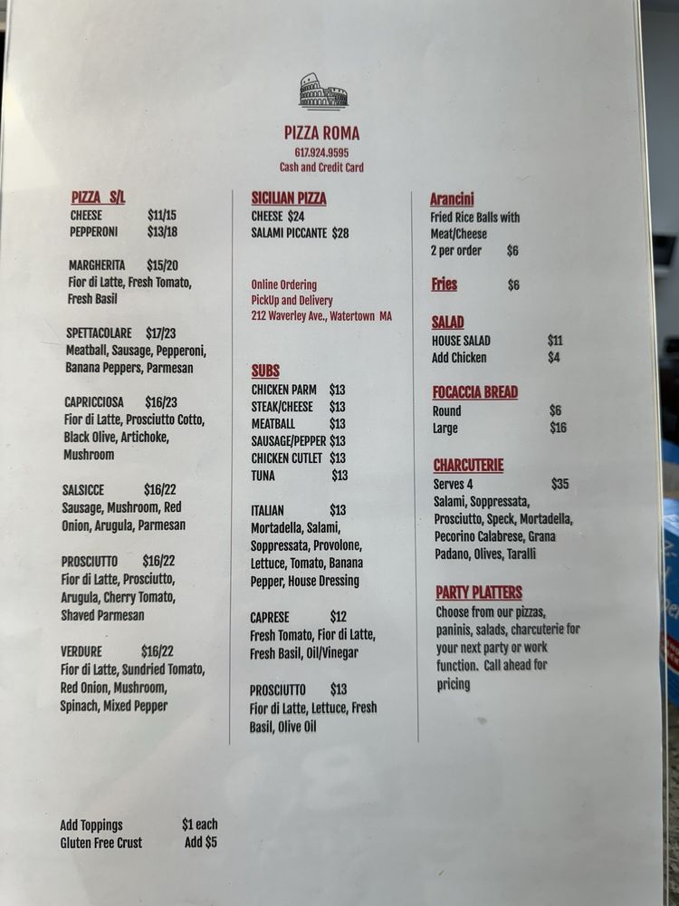 Pizza Roma, located in Watertown, MA, offers a unique dining experience with a variety of pizza styles to choose from, including the beloved Sicilian pizza. Customers rave about the authentic Italian flavors and generous portion sizes. The menu also features vegetarian options and delicious sides like arancini and chicken parm. The new owners have revamped the place, offering fresh baked goods and a friendly atmosphere. While the seating is limited, the staff is accommodating and the service is fast. However, it is important to note that Pizza Roma accepts cash only. Overall, Pizza Roma promises a delightful dining experience with a mix of casual and classy ambiance, making it a must-visit for pizza lovers in the area.